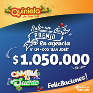 ¡Salió un premio de Quiniela en San Luis! El día Miércoles 22 de Octubre, en la Agencia N° 007-000 "La Millonaria" de San Luis, salió un premio de Quiniela de $1.050.000 ¡Felicitaciones al afortunado ganador!