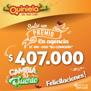 ¡Salió un premio de Quiniela en San Francisco del Monte de Oro! El día Jueves 20 de Abril en la agencia Nº 414-000 "Su Comodín" de San Francisco salió un premio de Quiniela de $407.000 ¡Felicitaciones al afortunado ganador!