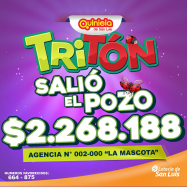¡UN GANADOR DEL TRITÓN EN SAN LUIS! En el sorteo "El Primero" del día Martes 15 de Julio, hubo un ganador del pozo del Tritón con los números  664 - 875 El afortunado apostador realizó su jugada en la Agencia Nº 002-000 "La Mascota" de San Luis y se llevó la suma de $2.268.188 ¡Felicitaciones!