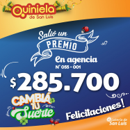 ¡Salió un premio de Quiniela en San Luis! El día Lunes 14 de Noviembre en la agencia Nº 033-000 "Géminis" de San Luis salió un premio de $210.000 ¡Felicitaciones al afortunado ganador!