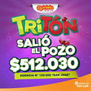 ¡Un ganador del pozo del Tritón en Quines!   En el sorteo El Primero del día Sábado 12 de Noviembre, hubo un ganador del pozo del Tritón con los números 847 y 515. El afortunado apostador hizo su jugada en la Agencia Nº 129-000 "San José" de Quines y se llevó el pozo acumulado de $512.030   ¡FELICITACIONES!