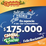 ¡Salió un premio de Quiniela en San Luis! El día Lunes 07 de Noviembre en la agencia Nº 250-000 "La Monumental" de San Luis salió un premio de $175.000 ¡Felicitaciones al afortunado ganador!