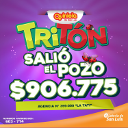 ¡UN GANADOR DEL TRITÓN EN SANTA ROSA DEL CONLARA! En el sorteo "Matutino" del día Miercoles 04 de Junio, hubo un ganador del pozo del Tritón con los números  306 - 714 El afortunado apostador realizó su jugada en la Agencia Nº 359-000 "La Tati" de SANTA ROSA DEL CONLARA y se llevó la suma de $906.775 ¡Felicitaciones!