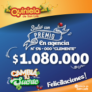 ¡Salió un premio de Quiniela en San Luis! El día Sábado 11 de Octubre, en la Agencia N° 176-000 "Clemente" de San Luis, salió un premio de Quiniela de $1.080.000 ¡Felicitaciones al afortunado ganador!