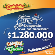 ¡Salió un premio de Quiniela en San Francisco del Monte de Oro! El día Martes 14 de Octubre, en la Agencia N° 414-000 "Su Comodín" de San Francisco del Monte de Oro, salió un premio de Quiniela de $1.280.000 ¡Felicitaciones al afortunado ganador!