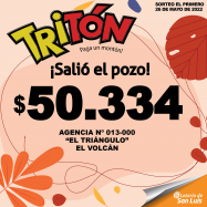 ¡Un ganador del pozo del Tritón en El Volcán!  En el sorteo El Primero del día jueves 26 de Mayo, hubo un ganador del pozo del Tritón con los números 210 y 255. El afortunado apostador hizo su jugada en la agencia Nº 013-000 "El Triángulo" de El Volcán y se llevó el pozo acumulado de $50.334 ¡FELICITACIONES!