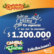 ¡Salió un premio de Quiniela en Juana Koslay! El día Sábado 10 de Mayo, en la Agencia N° 344-000 "El Unicornio" de Juana Koslay, salió un premio de Quiniela de $1.200.000 ¡Felicitaciones al afortunado ganador!