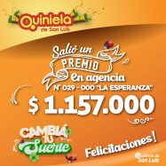 ¡Salió un premio de Quiniela en La Toma! El día Miércoles 30 de Abril, en la Agencia N° 029-000 "La Esperanza" de La Toma, salió un premio de Quiniela de $1.157.000 ¡Felicitaciones al afortunado ganador!