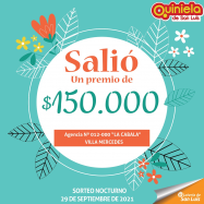 ¡Salió un premio de Quiniela en Villa Mercedes! El día miércoles 29 de septiembre, en la agencia Nº 012-000 "La Cabala" de Villa Mercedes, salió un premio de Quiniela de $150.000 ¡Felicitaciones al  afortunado ganador!