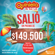 ¡Salio un premio de Quiniela en San Luis! El día lunes 6 de enero, en la agencia Nº 181-000, "Jota de Corazones" de San Luis, salió un premio de Quiniela de $149.500.   ¡Felicitaciones al afortunado ganador!