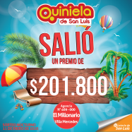 ¡Salio un premio de Quiniela en Villa Mercedes! El día sábado 11 de enero, en la agencia Nº 469-000, "El Millonario" de Villa Mercedes, salió un premio de Quiniela de $201.800.   ¡Felicitaciones al afortunado ganador!