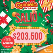 ¡Salio un premio de Quiniela en San Luis! El día Viernes 3 de enero, en la agencia Nº 033-000, "Géminis" de San Luis, salió un premio de Quiniela de $203.500.   ¡Felicitaciones al afortunado ganador!