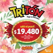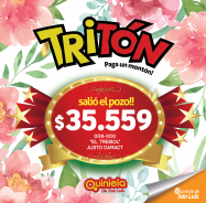 ¡Un ganador del pozo del Tritón en Justo Daract!   En el sorteo Matutino Nº 1529, del día miércoles 10 de octubre, la suerte visitó a un afortunado ganador que se llevó el pozo acumulado del Tritón con los números 616 y 431. Jugó en la Agencia Nº 006-000, "El Trebol", de Justo Daract y se llevó $35.559.