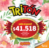¡Un ganador del pozo del Tritón en San Luis!   En el sorteo Matutino Nº 3387, del día martes 2 de octubre, la suerte visitó a un afortunado ganador que se llevó el pozo acumulado del Tritón con los números 413 y 707. Jugó en la Agencia Nº 003-000, "Mis Ángeles", de San Luis y se llevó $41.518.