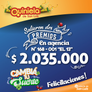 ¡Salió un premio de Quiniela en San Luis! El día Viernes 14 de Marzo, en la Agencia N° 007-000 "La Millonaria" de San Luis, salió un premio de Quiniela de $2.850.000 ¡Felicitaciones al afortunado ganador!