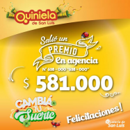 ¡Salió un premio de Quiniela en San Luis! El día Martes 04 de Marzo, en la Agencia N° 452-000 "El golpe de suerte" de San Luis, salió un premio de Quiniela de $407.000 ¡Felicitaciones al afortunado ganador!