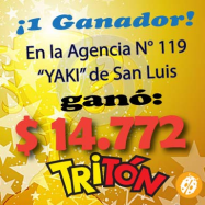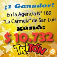 Un apostador jugó al Tritón en la Agencia N° 189 "La Carmela" de San Luis, y se hizo ganador del pozo de $ 10.732.  ¡¡Apostá al juego oficial que te paga y te premia!!