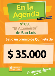 En San Luis, en la Agencia N° 050 "El Alquimista" salió un premio de $35.000...felicitaciones, el juego oficial te paga y te premia.