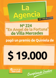 La Agencia N° 224 "El Ángel de la Fortuna" de Villa Mercedes, pagó un premio de $19.000...el juego oficial te paga y te premia.