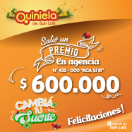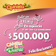 ¡Salió un premio de Quiniela en San Luis! El día Martes 18 de Febrero, en la Agencia N° 015-000 "La Quinielisima" de San Luis, salió un premio de Quiniela de $500.000 ¡Felicitaciones al afortunado ganador!