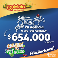 ¡Salió un premio de Quiniela en La Punta! El día Miércoles 12 de Febrero, en la Agencia N° 900-008 "Estrella" de La Punta, salió un premio de Quiniela de $654.000 ¡Felicitaciones al afortunado ganador!