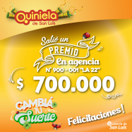 ¡Salió un premio de Quiniela en La Punta! El día Viernes 14 de Febrero, en la Agencia N° 900-001 "La 22" de La Punta, salió un premio de Quiniela de $700.000 ¡Felicitaciones al afortunado ganador!