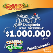 ¡Salió un premio de Quiniela en La Punta! El día Viernes 26 de Septiembre, en la Agencia N° 900-008 "Estrella" de La Punta, salió un premio de Quiniela de $1.000.000 ¡Felicitaciones al afortunado ganador!