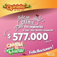 ¡Salió un premio de Quiniela en Unión! El día Lunes 27 de Enero, en la Agencia N° 044-000 "Rotito Jugador" de Unión, salió un premio de Quiniela de $577.000 ¡Felicitaciones al afortunado ganador!