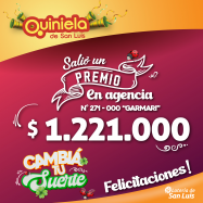 ¡Salió un premio de Quiniela en San Luis! El día Viernes 17 de Enero, en la Agencia N° 271-000  "Garmari" de San Luis, salió un premio de Quiniela de $1.221.000 ¡Felicitaciones al afortunado ganador!