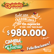¡Salió un premio de Redoblona en Quines! El día Sábado 18 de Enero, en la Agencia N° 023-000 de "San Elias" de Quines, salió un premio de Redoblona de $980.000 ¡Felicitaciones al afortunado ganador!