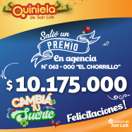 ¡Salió un premio de Quiniela en Juana Koslay! El día Martes 10 de Diciembre, en la Agencia N° 063-000 "Nocturna" de Juana Koslay, salió un premio de Quiniela de $10.175.000 ¡Felicitaciones a los afortunados ganadores!