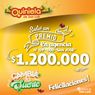 ¡Salió un premio de Quiniela en Quines! El día Sábado 28 de Septiembre, en la Agencia N° 129-000  "San José" de Buena Esperanza, salió un premio de Quiniela de $1.200.000 ¡Felicitaciones al afortunado ganador!