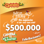 ¡Salió un premio de Quiniela en Quines! El día Miercoles 28 de Agosto, en la Agencia N°129-000 "San José" de Quines, salió un premio de Quiniela de $500.000 ¡Felicitaciones al afortunado ganador!