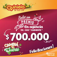 ¡Salio un premio de quiniela en San Luis! El dia Sábado 10 Agosto, en la agencia N°176-000 "Clemente" de San Luis,salio un premio de quiniela de $700.000 ¡Felicitaciones al ganador!