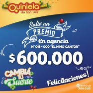 ¡Salió un premio de Quiniela en Villa Mercedes! El dia Sábado 27 de Julio, en la Agencia N° 018-000 "El Niño Cantor" de Villa Mercedes salió un premio de Quiniela de $600.000. ¡Felicitaciones al afortunado ganador!