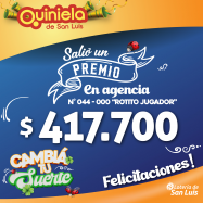 ¡Salió un premio de Quiniela en San Luis! El dia Sábado 27 de Julio, en la Agencia N° 007-000 "La Millonaria" de San Luis salió un premio de Quiniela de $834.000. ¡Felicitaciones al afortunado ganador!