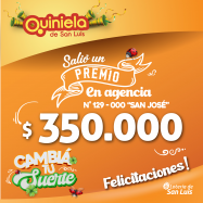 ¡Salió un premio de Quiniela en Quines!   El día Miércoles 15 de Mayo en la agencia Nº 129-000 " San José" de Quines, salió un premio de Quiniela de $350.000   ¡Felicitaciones al afortunado ganador!