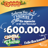 ¡Salieron tres premios de Quiniela en Villa Mercedes!   El día Sábado 11 de Mayo en la agencia Nº 551-000 " Piccolina" de Villa Mercedes salieron tres premios de Quiniela de $600.000 c/u   ¡Felicitaciones a los afortunados ganadores!